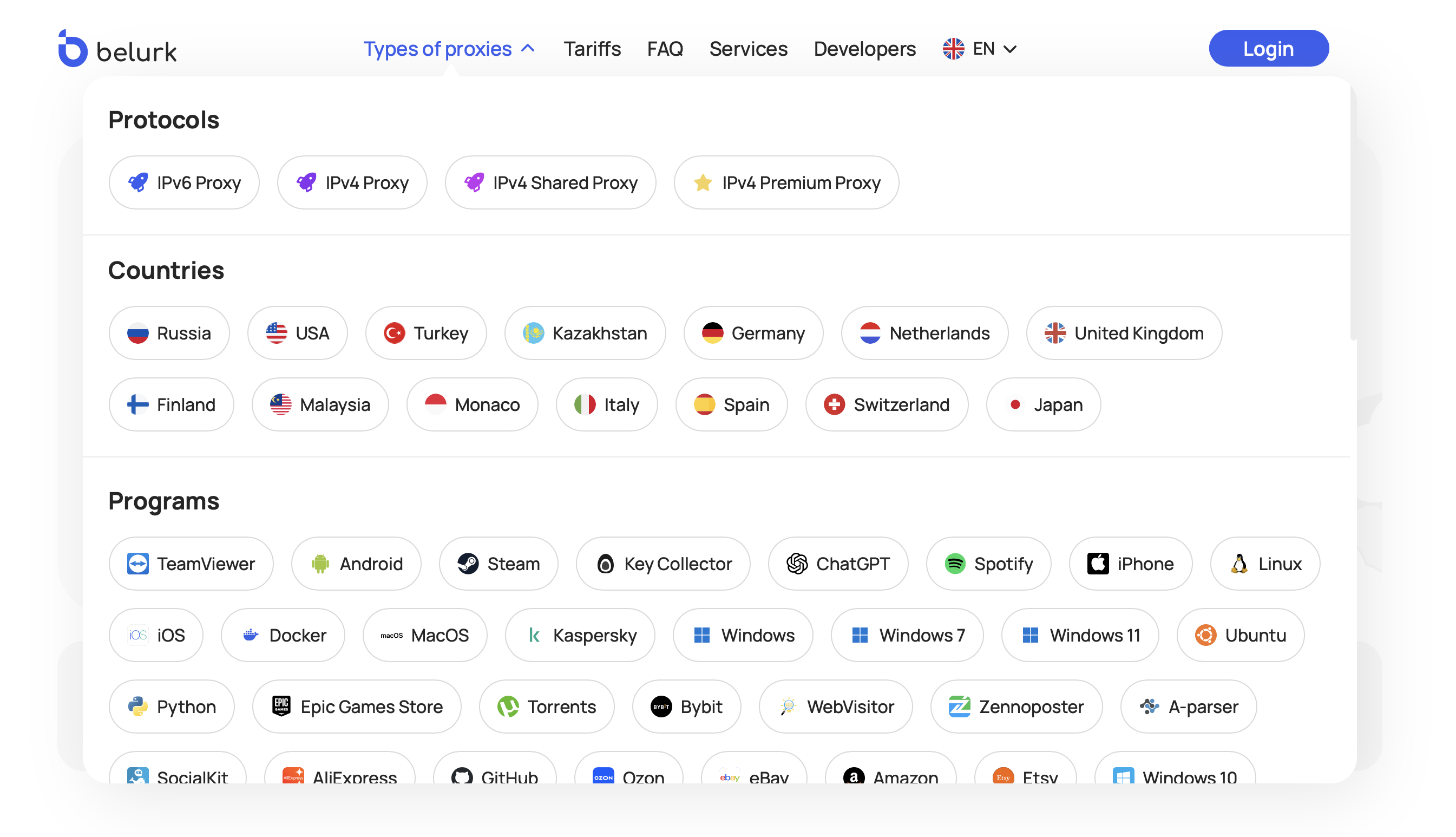 Belurk meets these criteria. With Belurk, you save setup time: ready-made geolocations for your target markets, automatic IP rotation, and transparent statistics let you quickly identify where and why issues occur—and fix them before they affect your business metrics. Need integration with a scraper or CRM? APIs make this connection simple and secure.